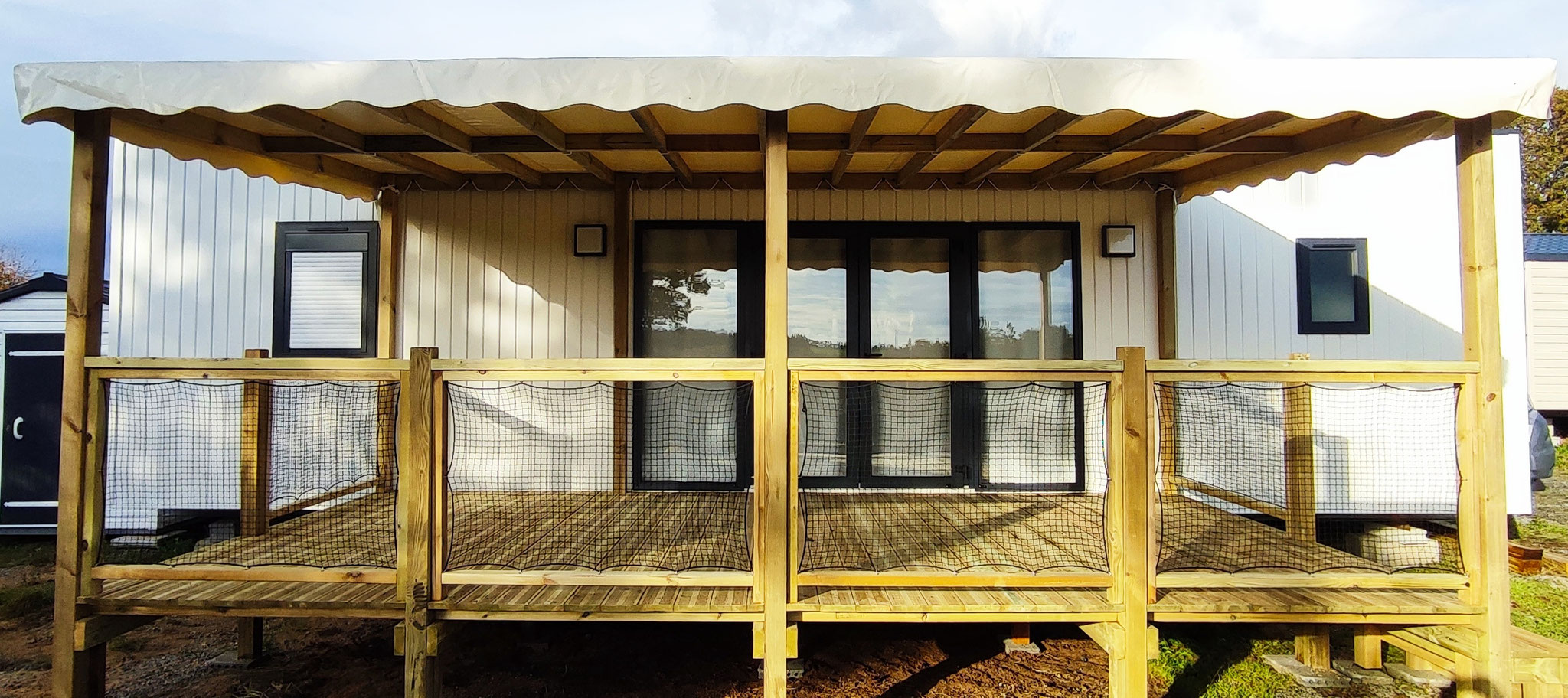 Morbihan Loisirs Evasion conçoit et réalise votre projet extérieur sur-mesure selon vos besoins et s'adapte aux contraintes de votre mobil home ou aux exigences du camping. Vous bénéficiez d’un espace ouvert sur l’extérieur totalement intégré à votre environnement.